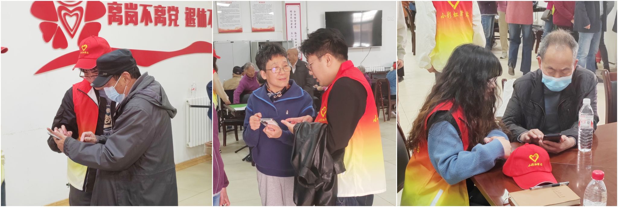爱心驿站在各住宅区活动室每周二定期开放,提供爱心帮扶、科技助老、“智能生活”线下咨询等服务,“小彩虹”学生志愿者们与老同志聊天谈心、关怀帮扶,讲解离退休工作管理平台的应用,手把手辅导养老保险认证、导航、点餐等手机应用软件的使用,充分利用老少结对方式,发挥青年学子力量,将服务阵地前移,切实解决离退休职工在智能化生活中遇到的困难和问题,助力老同志智享生活,获得现场老同志的赞誉和认可。