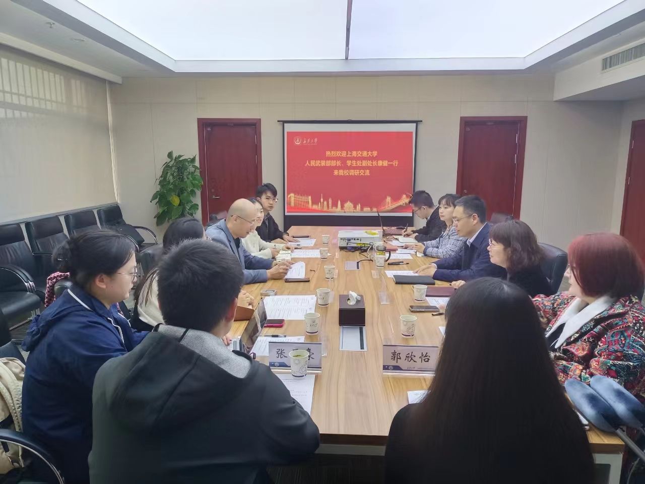 4月2日上午,上海交通大学人民武装部部长、学生处副处长康健一行6人来校调研,开云学生工作部(学生处)相关负责人参加会议。会议由学生工作部(学生处)、武装部部长姬国斌主持。