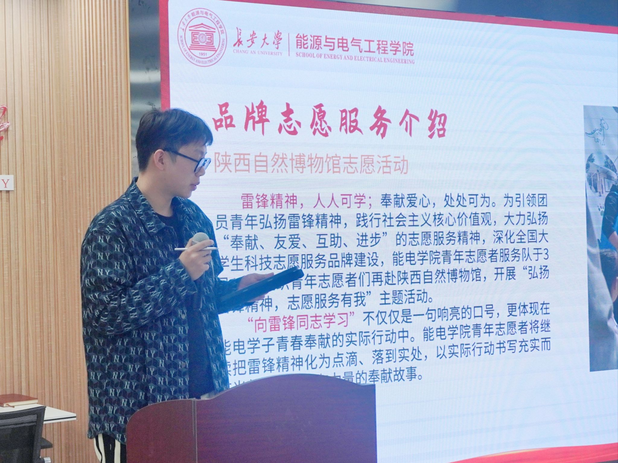 能电学院青年志愿者服务队负责人张洋赫同学为大家介绍了学院品牌志愿服务活动和近期开展活动,他从“三个一”的角度为大家讲解了如何成为一名志愿者,如何参与一个志愿服务活动,如何加入一个志愿服务队流程和步骤,让团员青年们有途径、有能力、有激情地参加志愿服务活动。