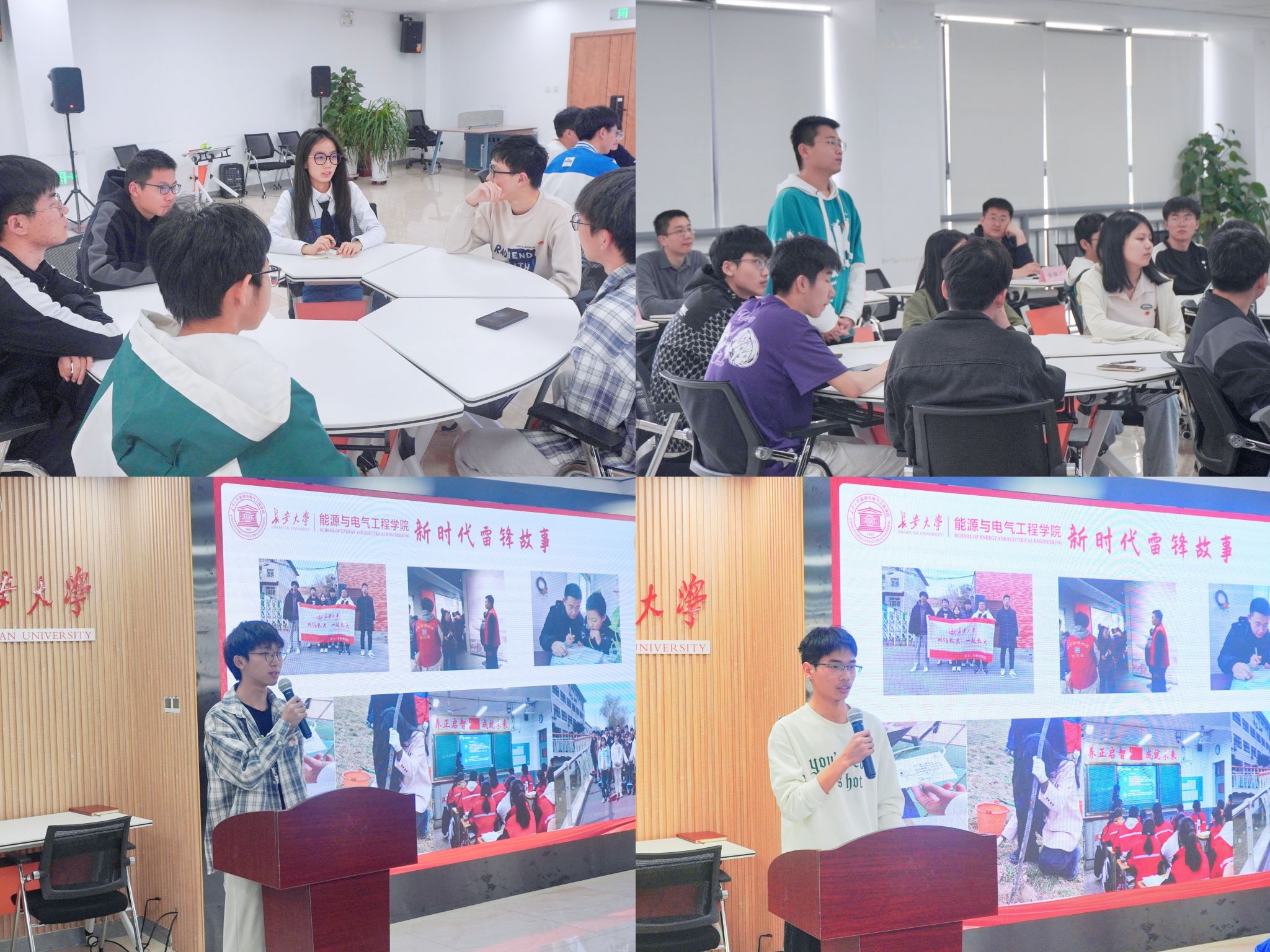 4月3日下午,能源与电气工程学院2023380303班团支部在北校区朝晖园示范性园区团体活动室开展“志愿服务情暖校园,雷锋精神薪火相传”示范主题团日活动。校团委副书记刘扬,学院党委副书记倪凤英,校团委社会实践与志愿服务中心主任谢雨阳观摩活动,并与团员青年深入交流。学院团委书记金振广,2023级辅导员汤陈麟一同观摩示范主题团日活动。