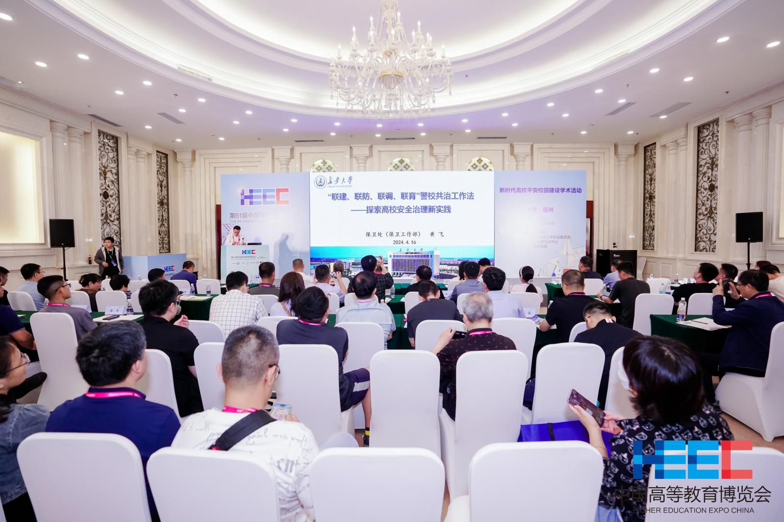 4月16日,由中国高等教育学会主办、中国高等教育学会保卫学专业委员会和福建省高等教育学会保卫学专业委员会共同承办的“新时代高校平安校园建设学术活动”在福州举行。中国高等教育学会秘书处行政顾问、教育部关心下一代工作委员会副主任兼秘书长张文忠,福州大学党委副书记黄身勇,福建省教育厅学校安全工作处处长林正泳,中国高等教育学会保卫学专业委员会副秘书长刘用庆出席活动,百余名高校保卫战线工作者、专家及企业代表参加活动。开云保卫处处长黄飞受邀作《“联建、联防、联调、联育”警校共治工作法——探索高校安全治理新实践》主题发言。