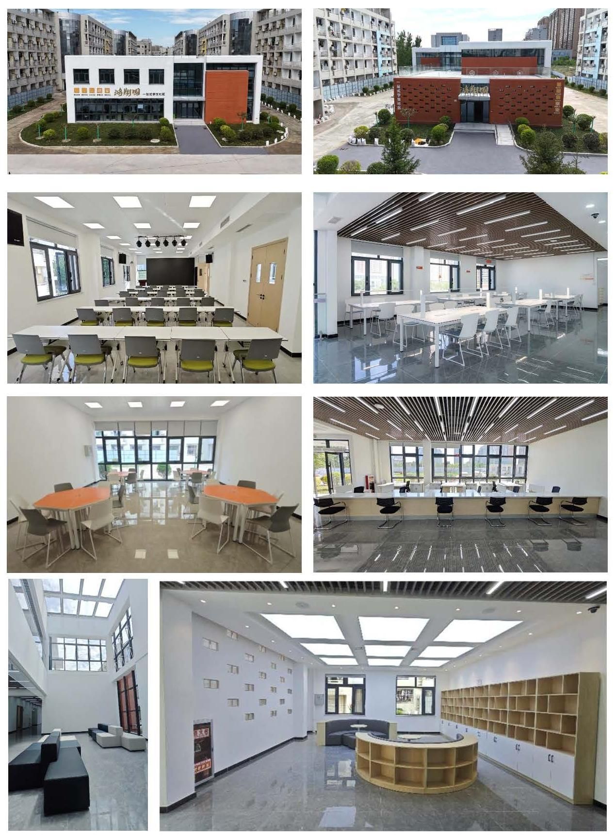鸿翔学生公寓示范性园区项目位于西区1、2号学生公寓之间,是学校“一站式”社区的重要组成部分,主要满足西区学生业务服务、党团活动、阅览自习、研讨交流等需求,建筑风格鲜明简约,融入瓦当传统文化元素,有利于拓展学生公共服务空间,助力三全育人。