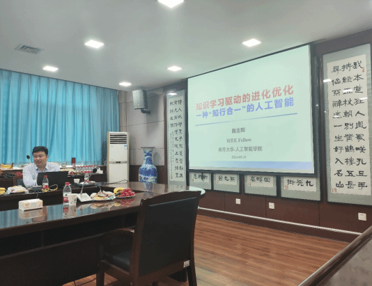 詹志辉教授作题为“知识学习驱动的进化优化”的学术报告。詹志辉从学习与优化两大重要技能出发讨论了人工智能领域中学习算法和进化算法的互助性,提出了结合知识学习和行为演化实现“知行合一”的新型人工智能算法,为现代超复杂优化问题提供新的求解思路,进而推动人工智能的新发展。