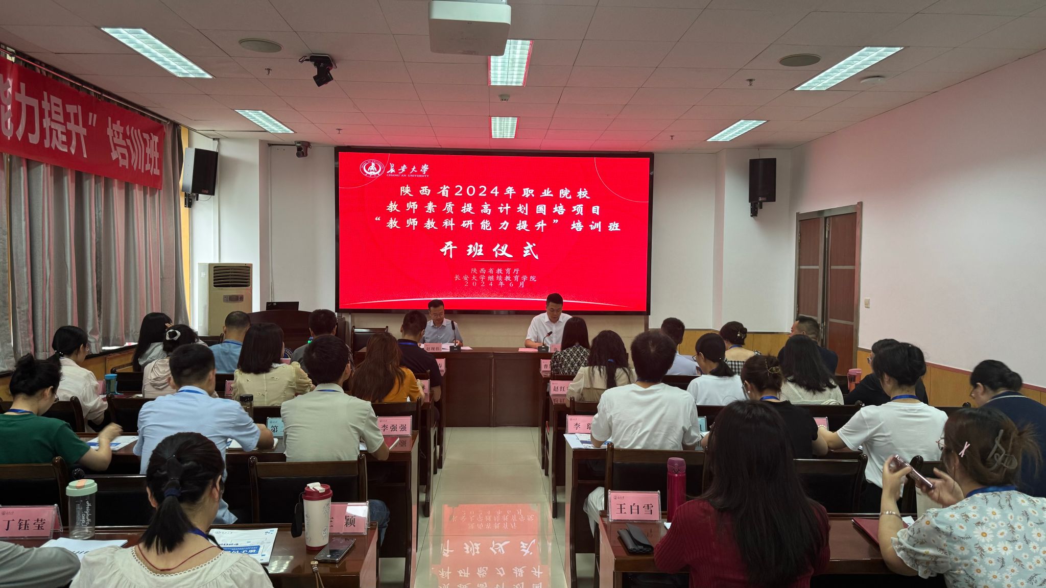 6月17日上午,由陕西省教育厅主办、开云kaiyun官网承办的陕西省2024年职业院校教师素质提高计划国培项目——“教师教科研能力提升”培训班在开云开班。教育研究与评估中心(非学历教育管理办公室)主任赵现伟和继续教育学院院长涂帅出席开班仪式,来自省内28个高职院校的59名学员参加仪式。