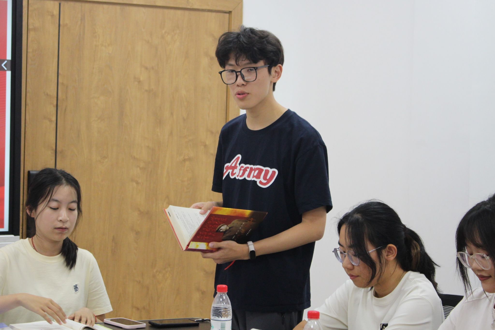 “红色书屋阅读”环节中,大家静静翻阅,倾心感悟。随后,各位入党积极分子起身发言,说出他们心中对于这些书的见解和心得。在“《红岩》情景扮演”环节,组长黄喆恺携手三名组员,呈现了一场简短而精彩的表演。大家无不为之动容,再一次感悟了革命前辈舍生取义的精神。而后,本科生第四党支部的党员们走上前,在长征地图上带领大家重温长征之路。一段“再踏长征路”沙盘演绎诉尽沿途艰险多难,再现红军英勇刚毅的光辉形象。