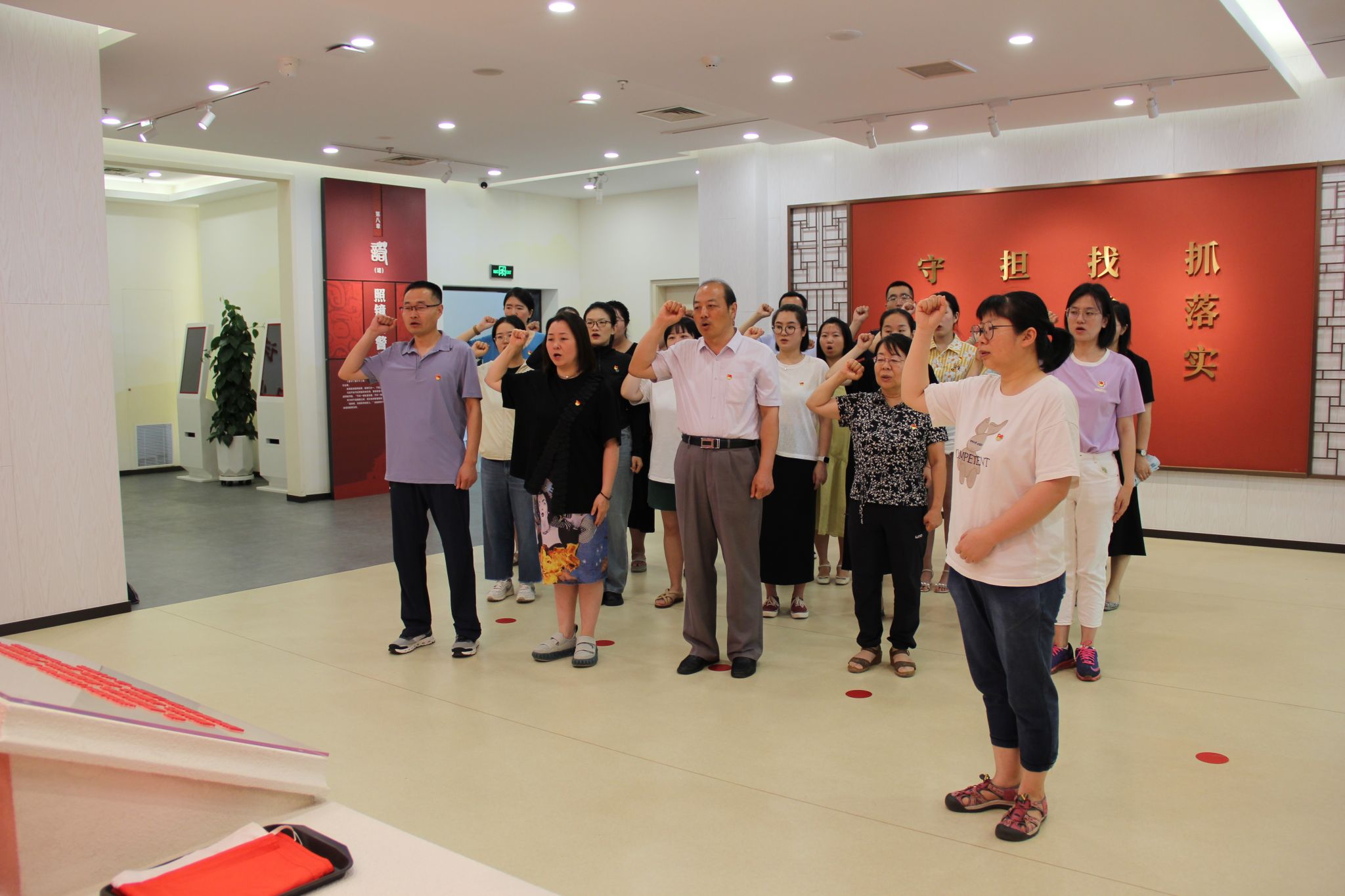 活动中,大家依次参观了“省(请你思考)、心(不忘初心)、律(铁打党纪)、诫(沉痛教训)、儆(警钟长鸣)、光(方向指引)、率(榜样力量)、进(全新篇章)、诺(照镜自警) ”等九个展区,观看了《立碑》视频短片,学习了党的初心使命的内涵、党的纪律建设的历程、党的精神谱系的发展,对党风廉政建设和反腐败斗争的成效有了最直观的了解。最后,全体党员重温入党誓词。