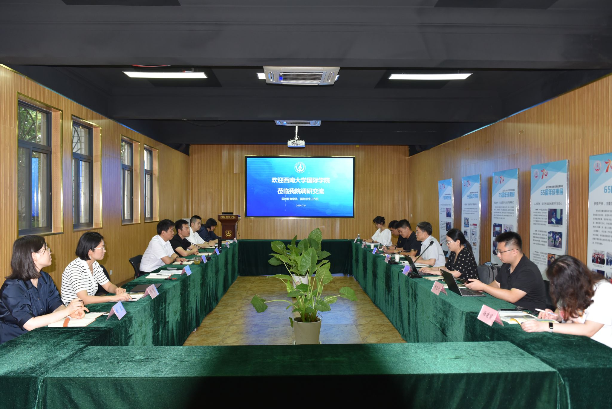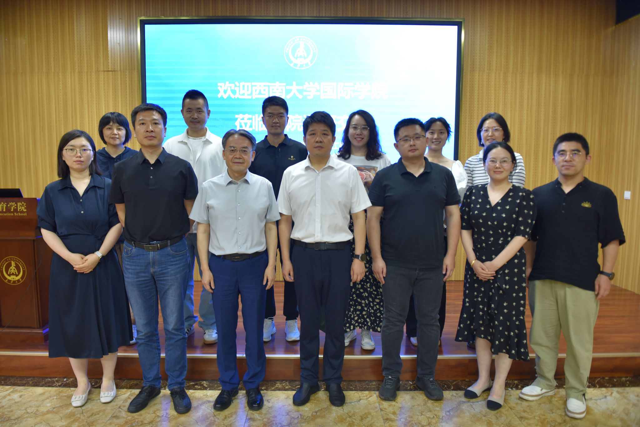 7月9日,西南大学国际学院党委书记刘猛一行7人到开云国际教育学院调研交流。国际教育学院院长张伟、副院长吕卫东及学院相关科室负责人参加了座谈会。