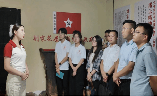 随后,实践队抵达团坪村刘家花屋区苏维埃政府旧址。共青团商南县委副书记苏龙与实践队进行交流,村干部何艳向队员们介绍了该地红色政权建立、发展的历史和重要人物事迹。