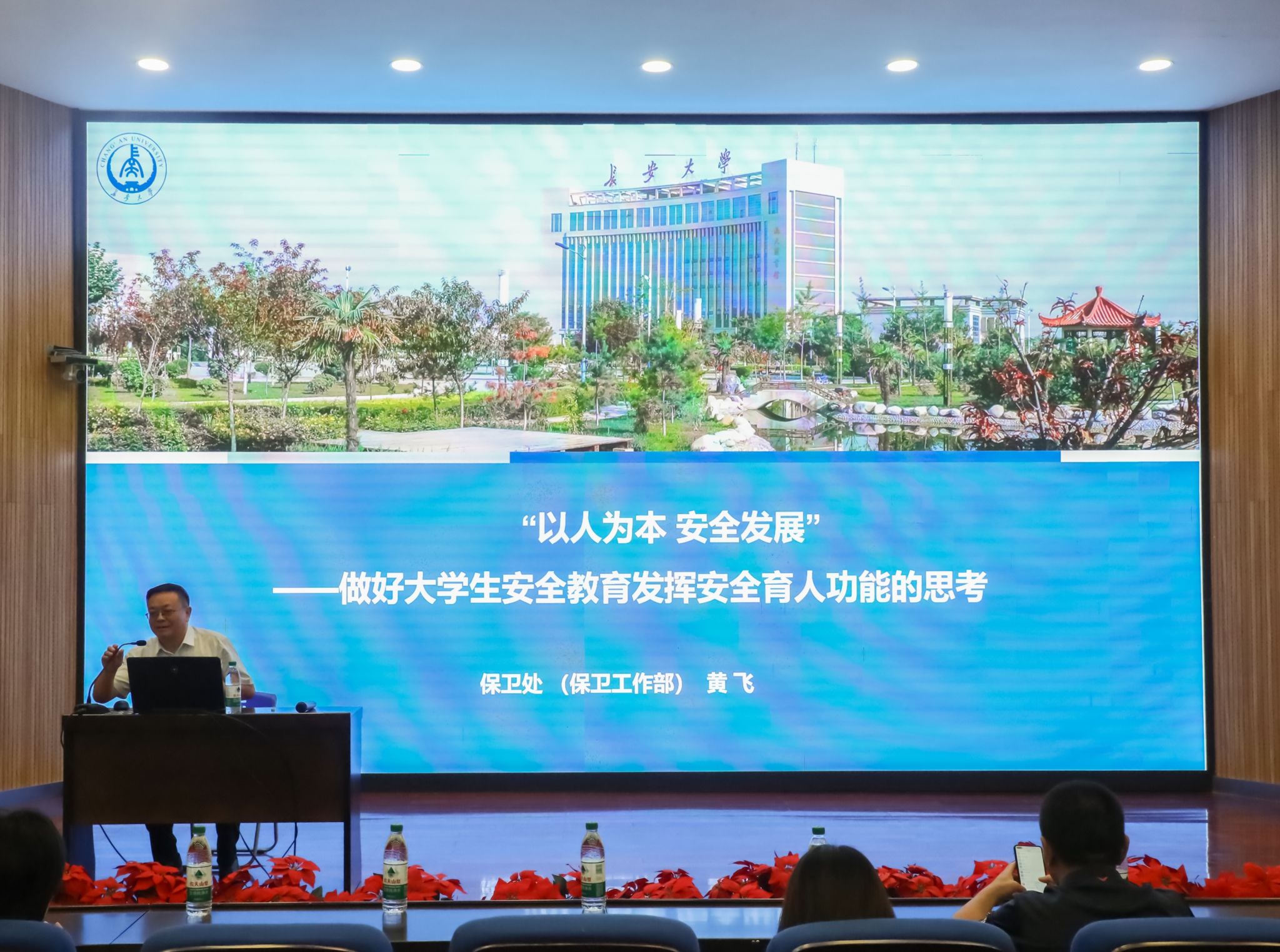 9月13日下午,为提高研究生新生的安全意识和自我保护能力,研究生工作部联合保卫处在南校区东院伯声报告厅举办了题为“以人为本 安全发展——做好大学生安全教育发挥安全育人功能的思考”研究生新生安全第一课主题讲座,保卫处处长黄飞主讲,各学院150余名研究生参加。