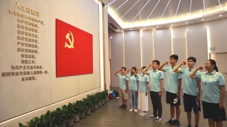 “我志愿加入中国共产党……”在馆内的宣誓厅,面对鲜红的党旗、指导老师许超然举起右拳,带领实践队队员一同重温入党誓词。入党誓词镌刻着中国共产党人,百年来的初心与使命,也砥砺、验证着每个共产党员的坚强意志和崇高品格。实践队员们表示,纵观中国近代史,没有哪一个政治团体像中国共产党这样,坚定理想信念,不畏流血牺牲,把积贫积弱的半殖民地半封建的旧中国改造成为欣欣向荣的新中国。新时代青年要铭记党的光辉历史,坚定信念决心,以更加昂扬的斗志接续奋斗、砥砺前行,为实现中华民族伟大复兴贡献青年力量。
