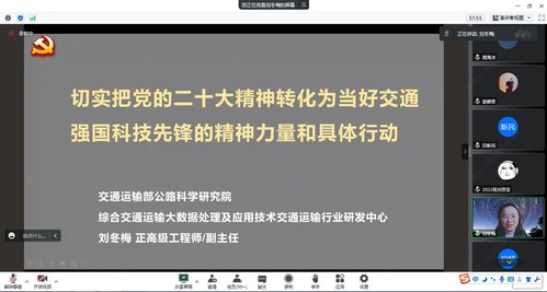 为深入学习宣传贯彻党的二十大精神,把广大党员干部和师生员工的思想统一到党的二十大精神上,推动党的二十大精神走进教学、科研、管理一线,走进师生。12月1日晚,运输工程学院邀请党的二十大代表、交通运输部公路科学研究院大数据研发中心副主任刘冬梅同志作专题报告。报告会由院长葛颖恩主持。