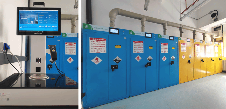 强保障,夯实长效安全举措。在安全保障方面,建设了全校首间标准化智能型危险化学品储存室,采用防爆通风柜、智能监控系统及气体感应系统,实行“双人双锁+电子台账”管理模式,实现剧毒、易制毒、易制爆等危险化学品全生命周期溯源追踪及信息化管理。同时,实验室完成智能门禁改造,实现分级分类精准管控。论证中的危废品暂存系统可实现危废品的分类暂存、定期清运、智能化管理,并联同实验室与设备管理处筹建安全体验中心,全方位保障实验室安全。