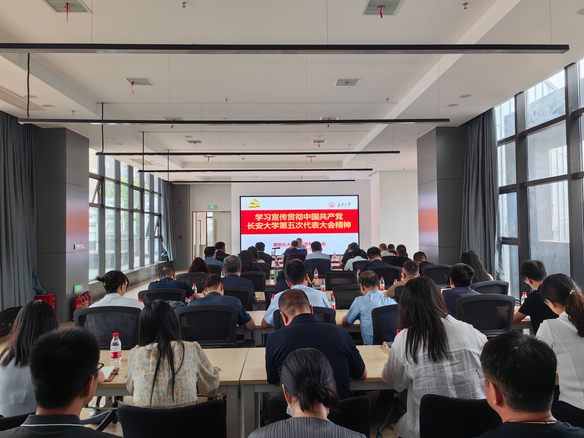 资产经营公司总经理吴永红传达了学校第五次党代会的基本情况,对大会主题、第四次党代会以来取得的主要成绩和宝贵经验、“三六八一”战略规划等内容进行了详细解读。他表示,全体干部职工要把党代会的精神转化为行动指南,聚焦主责主业,全面实施降本增效,努力提高对学校收益的贡献度,为实现特色鲜明、国际知名的高水平研究型大学贡献力量。