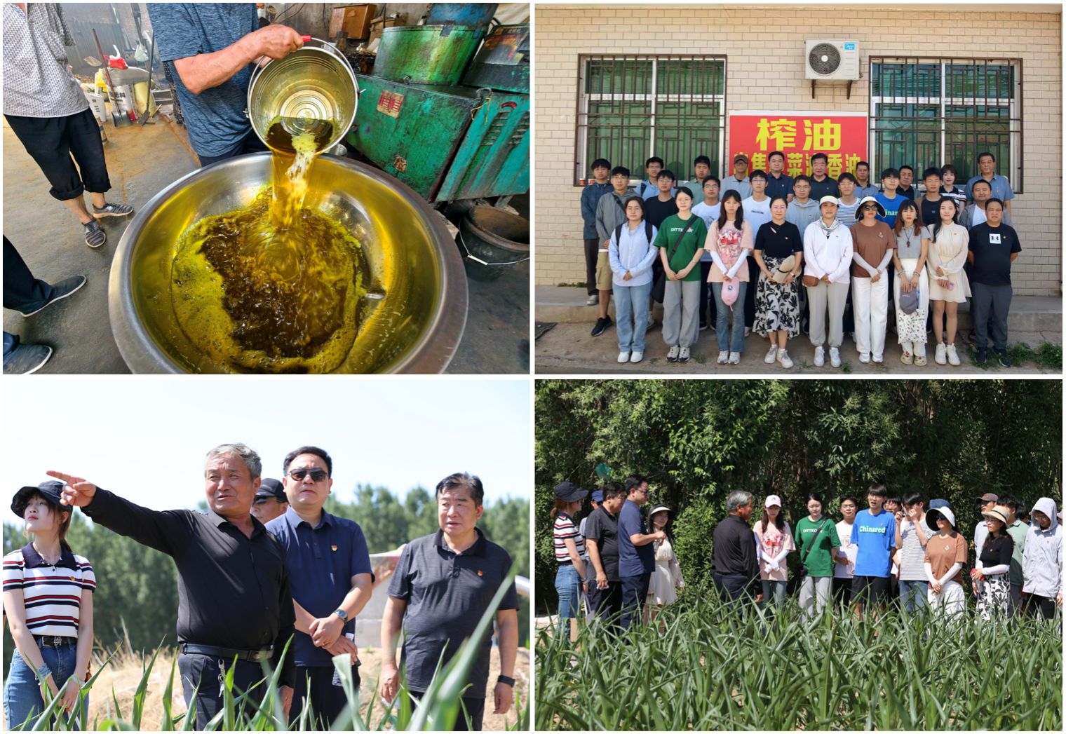 在临潼行者街白庙村振民油坊,师生党员亲身体验传统古法榨油工艺。在油坊师傅的指导下,大家分别体验了从菜籽筛选、炒制到碾粉、蒸坯、包饼、压榨等传统榨油流程,最终榨油300余斤。活动第二站,师生党员们转战田间地头,开启了一场沉浸式的田间研学。在农技人员讲解下,观察学习农作物种植、生长周期与田间劳作、管理要点等知识,感受现代农业技术与传统农耕智慧的结合。