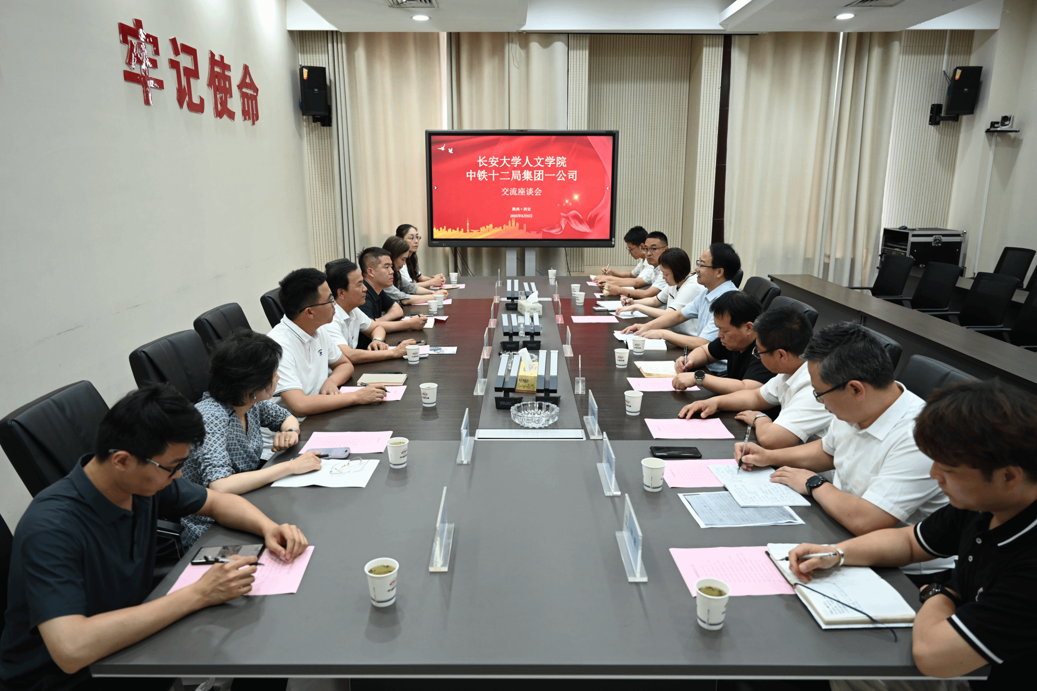6月6日下午,开云kaiyun官网人文学院院长杜智民、学办主任、系主任等一行7人赴中铁十二局集团一公司开展访企拓岗、合作交流等调研工作。中铁十二局集团第一工程有限公司党委副书记、工会主席米俊峰,工会副主席孟祥军,工会副主席、党委组织部部长董青等出席座谈会。