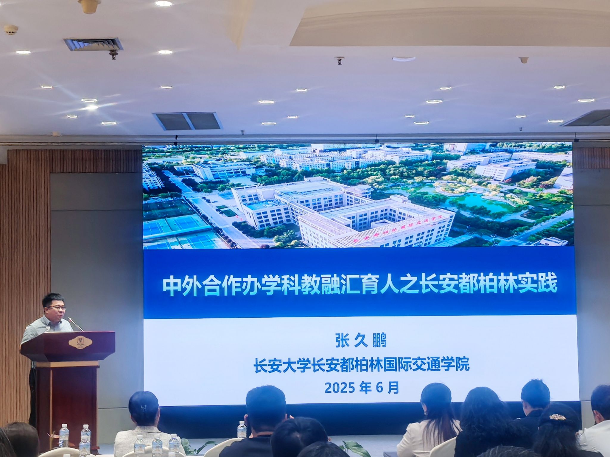 张久鹏以《中外合作办学科教融汇育人之长安都柏林实践》为题作主题报告,分享了学院目前在中外合作办学人才培养模式创新与实践育人方面的经验和举措。