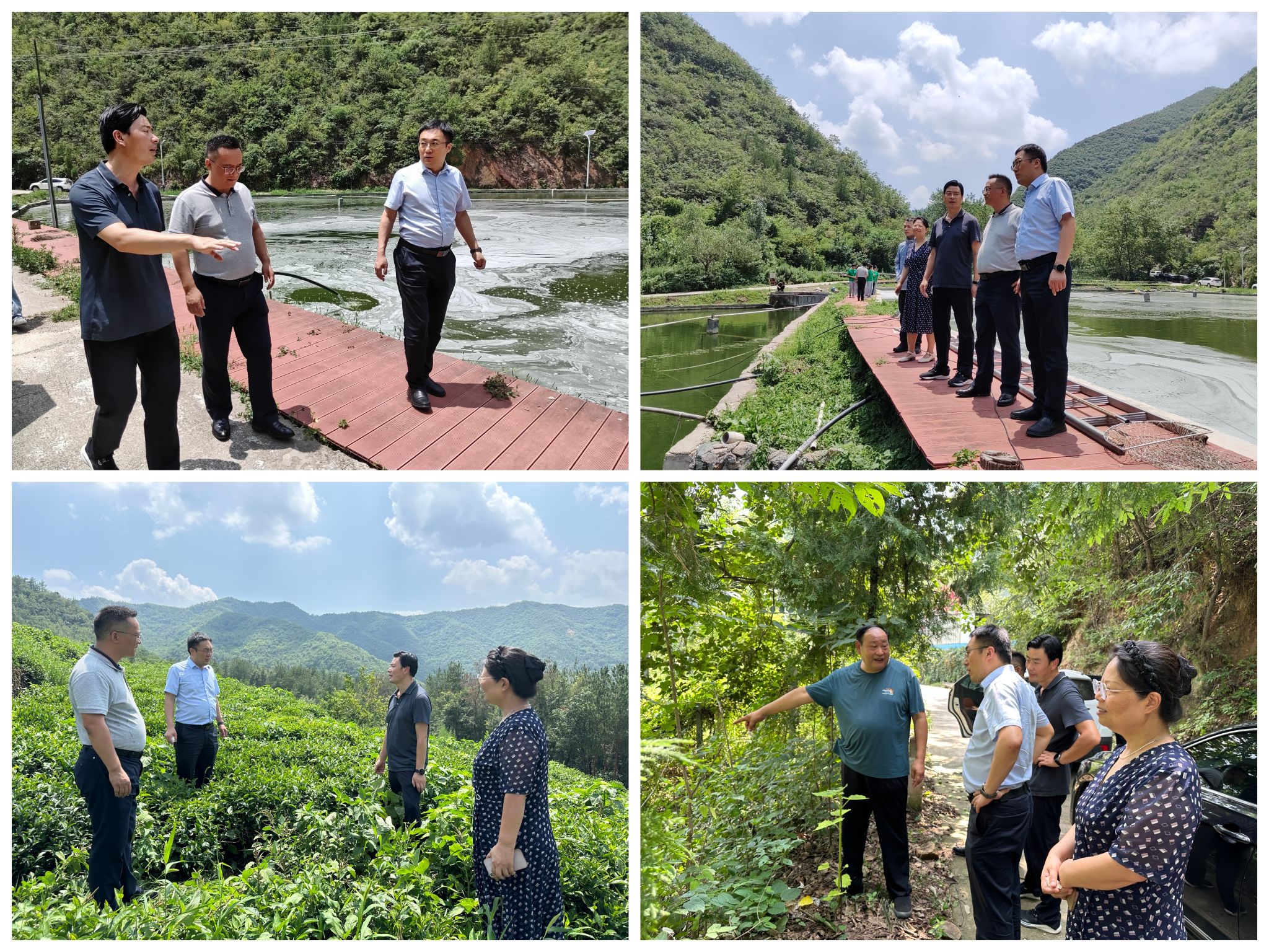 在镇、村书记陪同下,学院一行深入乡村产业一线,实地调研双方党建结对帮扶项目——地坪村特色水产养殖基地。学院领导细致询问了2024年被水毁渔场的修缮情况,详细了解了水产养殖规模、养殖技术瓶颈与市场销售渠道等,共同为特色产业可持续发展建言献策。随后,一行人前往地坪村茶叶种植基地与中药材种植基地,实地察看作物长势,了解种植规模、技术管理及深加工规划,并就如何提升产品附加值、拓展销售渠道等问题与镇、村干部现场交流,积极为特色产业发展把脉支招。