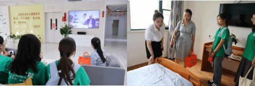 实践队员观看西安工会医院老年护理院介绍短片及实地考察