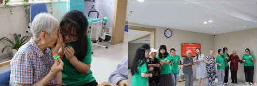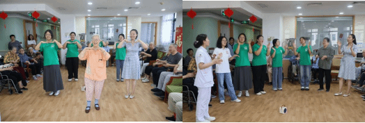 实践队员在西安工会医院老年护理院与老人们共同表演