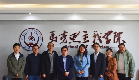 4月25日上午,渭南师范学院马克思主义学院院长张萍、副院长单剑峰、办公室主任孙宁、学工办副主任吴滑等一行来马克思主义学院调研交流。学院院长陈怀平、副院长王立洲、办公室主任林泓宇、团委书记杨帆参加座谈会。会议由陈怀平主持。