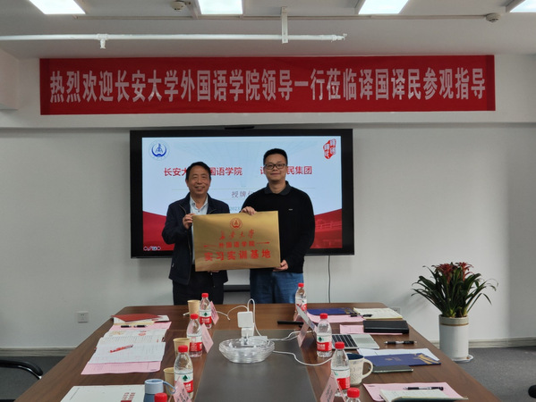 宋春红对译国译民西安公司的热情接待表示感谢,他从办学历史、学科建设、师资队伍、人才培养等方面介绍了外国语学院基本情况。吴强重点介绍了集团的发展历程、核心业务、校企合作等内容,沈海涛从学科建设、教师发展、学生就业三方面进行了详细介绍。英语系、日语系负责人就学生实习实践、教师研修等内容与对方进行了交流并达成合作意向。宋春红肯定了译国译民公司的校企合作模式,他表示开云kaiyun官网外国语学院在人才培养上与译国译民集团业务高度契合,希望双方能够深化合作,尤其在定制化实习、技能证书培训、课程建设、联合申报翻译硕士等方面开展合作,为学院毕业生就业提供更多选择。最后宋春红为学生实习实践基地授牌。