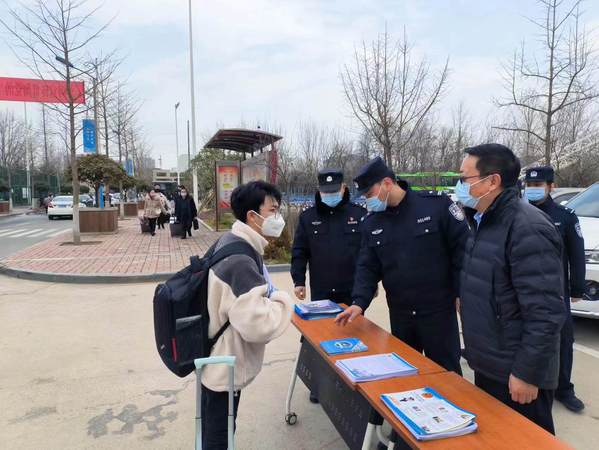 2023年春季开学季如期到来,为进一步提升广大师生的安全防范意识,保卫处联合市公安局未央分局、辖区派出所,就防范诈骗、交通安全、防范邪教、反间谍、禁毒等,面对面“零距离”为返校学子讲好“开学第一课”,市公安局未央分局张立副局长莅临现场指导活动开展。
