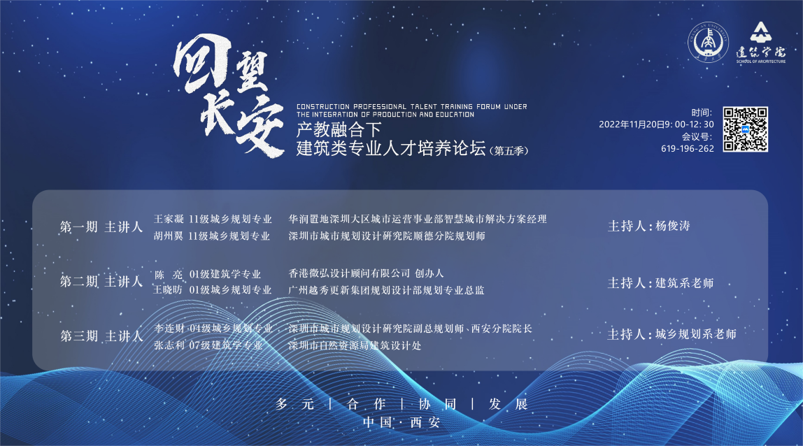 11月20日上午,“回望长安”产教融合下建筑类专业人才培养论坛(第五季)顺利举办。论坛由开云kaiyun官网建筑学院主办,围绕“青年设计师成长”“学科专业思维与实际应用融合”等议题展开深入讨论。建筑学院深圳分会校友段希莹、王家凝、胡州翼,社会合作处副处长邱旭辉,建筑学院党政领导、师生代表参加了论坛。