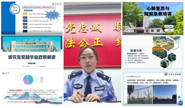 党校副校长徐苑芝以“坚定理想信念,践行红心向党,实现青春梦想”为题,系统梳理了我党百年以来取得的巨大成就,吸引研究生新生积极向党组织靠拢。研究生院副院长柳有权从学位授予、研究生培养质量、研究生学术不端等方面解读了研究生培养及学位政策。研究生工作部副部长胡锦玉解读了研究生奖助学金的相关政策,有利于研究生新生合理规划学习生活、实现个人目标。针对研究生国家助学贷款的申请问题,学工部资助中心副主任郭海丽详细介绍了贷款申请流程,以及基层就业学费补偿和贷款代偿政策。心理咨询中心贠丽萍老师的“人生新起点,遇见更好的自己”的主题讲座归纳了研究生常见的心理问题及调试方法,提倡研究生正确认识自己、合理释放心理压力。公安雁塔分局高倩文警官结合工作中的实际案例,对常见的电信诈骗手段进行分析,提高了研究生新生的防诈意识。校医院齐梓伊医生从常见的内外科疾病出发,介绍了研究生应熟练掌握的基础急救知识,并进行了技能操作演示;宋沂林医生讲解了新冠肺炎防护相关知识,呼吁研究生保持健康的生活习惯,做好个人防护。