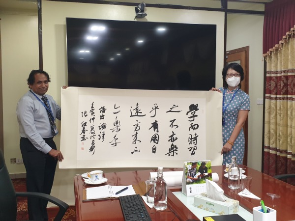 刘宇对维拉学院为首批中方人员赴任前后所给予的支持表达了衷心感谢,并表示将尽快熟悉工作环境,在双方高校的领导下,与各方一道,尽快筹备完成揭牌仪式,做好汉语中心中长期规划,开设满足马尔代夫多元化需求的汉语课程。她希望,汉语中心立足汉语教学,打造中马两国文化与学术交流的平台,增进中马两国人民友谊。