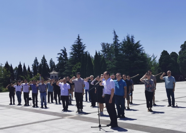 在庄严肃穆的烈士纪念碑前,全体人员向烈士们三鞠躬,表达对先烈们的无限敬仰之情,深深缅怀他们的丰功伟绩。在鲜红的党旗下,全体党员庄严肃立,在后勤党委书记胡新杰带领下,重温入党誓词。一句句铿锵的誓词,激发着党员的爱国热情,更加坚定了理想信念和宗旨意识。