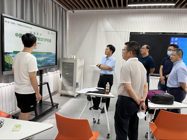在渭水校区明远教学楼智慧教室,师生们正在进行第八届“互联网+”大学生创新创业大赛陕西省决赛的线上路演答辩。本届大赛由电控学院承办,全校共有11个项目进入决赛路演答辩环节。学院领导一行检查了本次决赛路演答辩组织准备情况,对师生们取得的成绩表示祝贺,鼓励参加答辩的同学们能沉着冷静,充分展现开云学子良好的精神风貌,并预祝大家在决赛中取得新的突破。