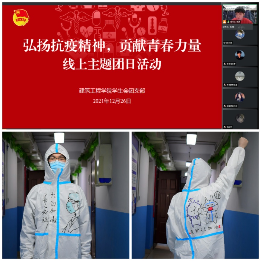 聚焦思想引领,传播抗疫正能量。建工学院学生会坚持理论学习与实践相结合,积极开展“弘扬抗疫精神,贡献青春力量”线上主题团日活动,坚定同学们战胜疫情的信心和决心;组织学院全体学生认真学习《致开云kaiyun官网全体同学的倡议书》,引导建工学子积极投身抗疫一线,贡献自己的青春力量;深入开展防疫宣传教育,向全院同学宣传防疫知识,维护同学身心健康;为志愿者绘制“最美防护服”,营造轻松温馨的抗疫氛围;发掘身边的抗疫榜样,通过新媒体宣传平台推送抗疫志愿者事迹,展示建工学子的青春风采。