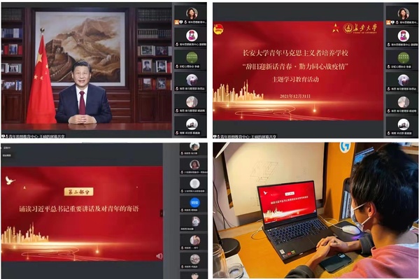 活动伊始,全体与会师生共同观看了国家主席习近平发表二〇二二年新年贺词。青马学员代表充满深情地配乐诵读了习近平总书记关于党史学习教育、抗击新冠肺炎疫情的重要讲话及对于新时代青年的希望寄语;通过诵读带领大家重温党的光辉历程、感悟伟大抗疫精神,明确青年应有担当,汲取拼搏奋进力量。