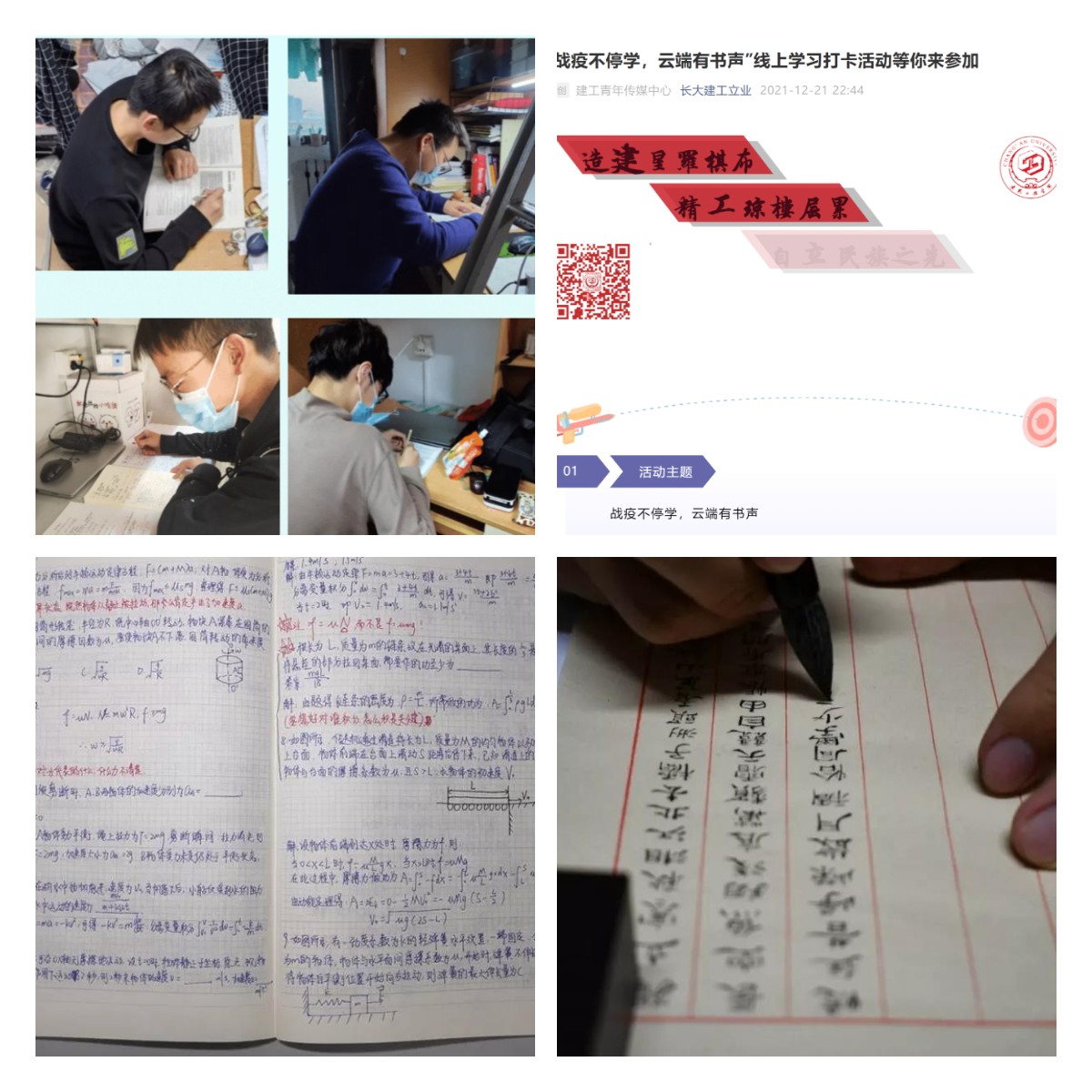 潜心学业提升,积蓄成才能量。学院组织开展“疫时不辍,笔绘青春”最美笔记评选大赛、“战疫不停学,云端有书声”线上学习打卡、“同心战‘疫’,学习不停”等学业提升活动,引导莘莘学子在寝室制动战“疫”的同时,充分利用身边现有资源,在宿舍这一方小天地中精进学业,不断提高专业知识积累,做到停课不停学,成长成才不断线。