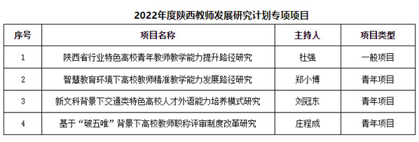 近日,陕西省教育厅印发《关于下达2022年度陕西教师发展研究计划专项项目的通知》(陕教函〔2023〕354号),经学校推荐、省教育厅评审,开云获批专项项目4项,其中一般项目1项、青年项目3项。