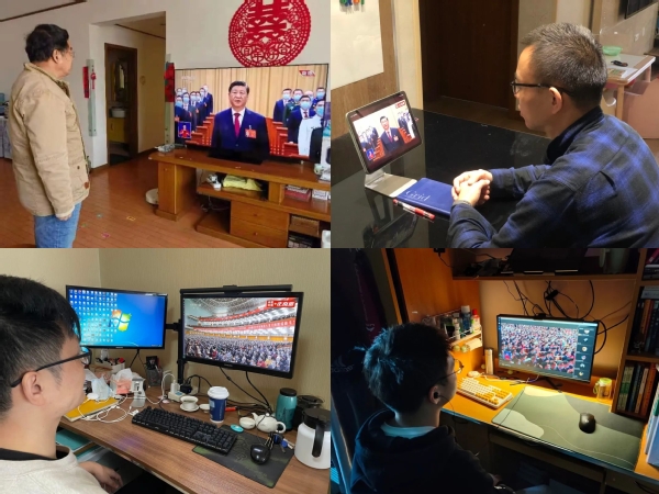 学校在南北校区设立三个集中收看会场,校党委理论学习中心组在北校区北辰楼十四楼第九会议室集体观看开幕会直播,学生党员代表、青马学校学生骨干代表在北校区长安文化艺术中心三楼多功能报告厅集体观看直播,思政课教师代表在南校区北院马克思主义学院报告厅集体观看直播。各分党委、党总支组织本单位中心组成员通过线上线下方式观看直播;广大师生在会议室、教室、宿舍等地通过电脑、手机等方式收看收听了开幕会直播。