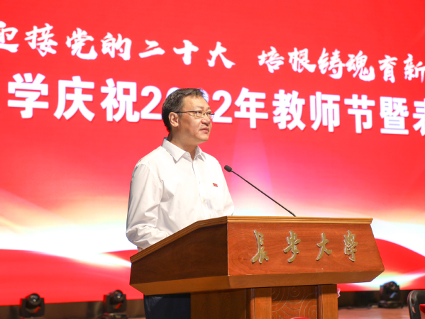 9月9日,学校在长安文化艺术中心召开庆祝2022年教师节暨表彰大会。校党委书记陈志坚,校党委副书记、纪委书记孟德勇,校党委副书记徐引正、黎开谊,副校长朱杰君、王建伟、范文以及校党委常委、校长助理出席大会,校党委副书记、副校长彪晓红主持会议。