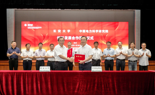 7月29日,校长沙爱民带队走访中国电力科学研究院有限公司,与中国电科院董事长赵鹏座谈交流并签署创新发展合作协议。签约仪式由中国电科院党委副书记、副总经理卢和平主持,校长助理裴建中参加活动。