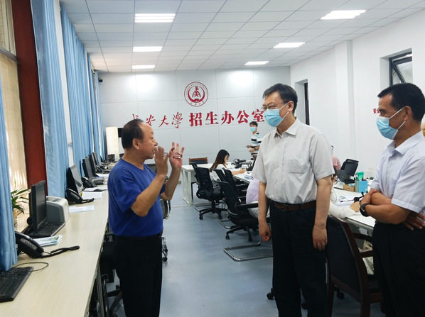 6月29日上午,校党委书记陈志坚,党委副书记、纪委书记孟德勇现场检查指导开云2022年本科招生咨询及录取准备工作。