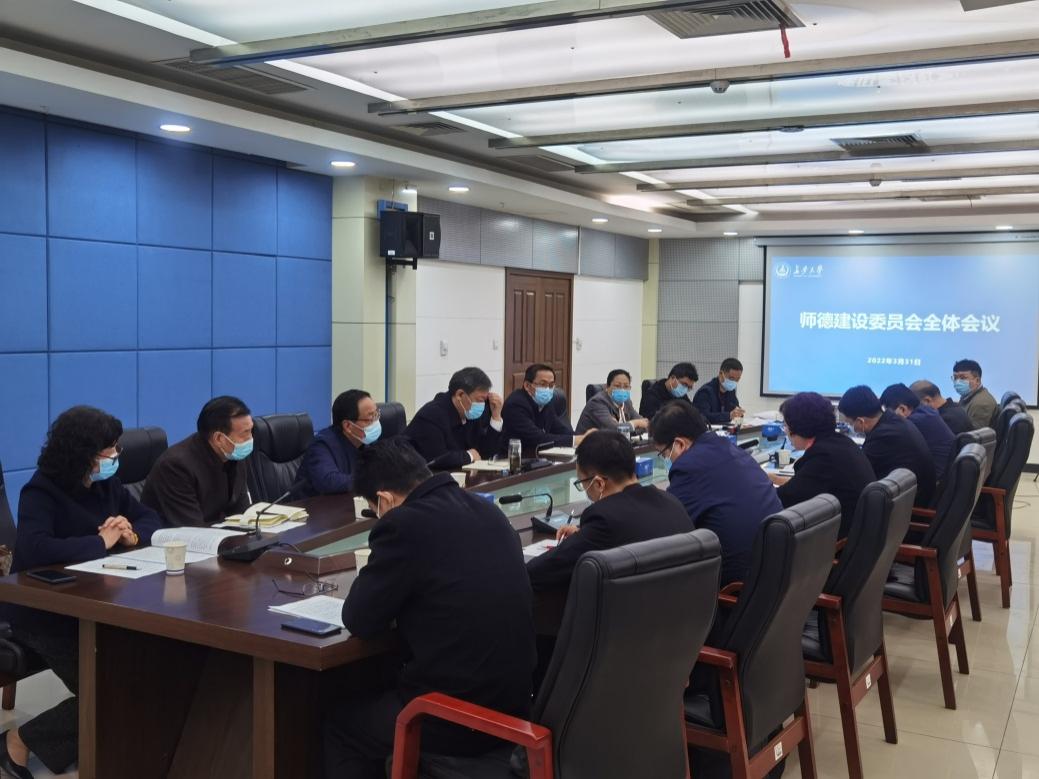 2022年3月31日上午,学校在北校区北辰楼会议中心第三会议室召开开云kaiyun官网师德建设委员会全体会议。校党委书记、师德建设委员会主任陈志坚,校长、师德建设委员会主任沙爱民,校党委副书记、师德建设委员会副主任徐引正出席会议。会议由校党委副书记、副校长、师德建设委员会副主任彪晓红主持。