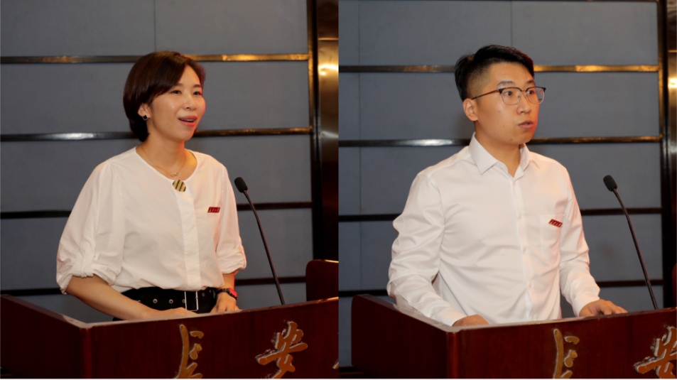 教师代表信息学院郭晨教授、新教工代表地测学院董怀民分别发言。