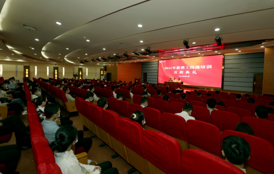 学校相关职能部门主要负责人以及全体新教工参加了开班典礼。