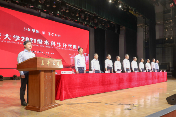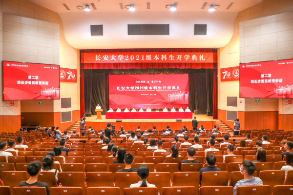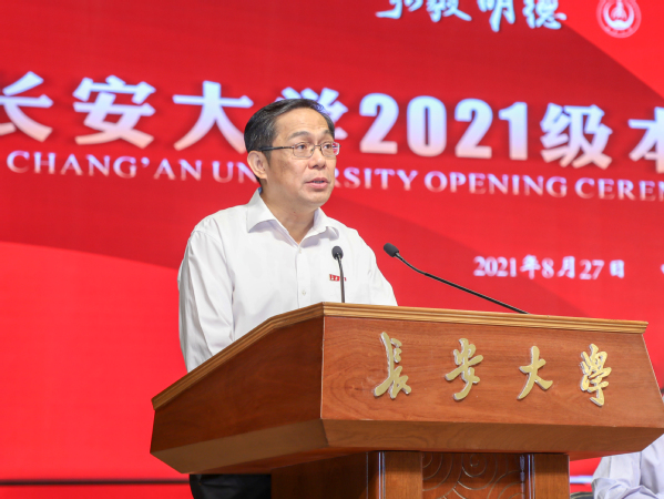 校长沙爱民代表全校师生和海内外校友向6300名2021级本科生表示衷心祝贺和热烈欢迎。他指出,建校70年来,学校逐步发展成为我国高层次人才培养、高水平科学研究、高质量社会服务的重要基地。近年来,学校深度服务交通强国、“一带一路”、黄河流域生态保护和高质量发展、新时代西部大开发等国家战略,为港珠澳大桥、北京大兴国际机场等国家重大工程建设提供了有力支撑,在祖国大地和世界舞台上发出了响亮的“长大声音”。沙爱民向全体2021级本科生提出三点希望:第一,坚定理想信念、心系家国长志气,把求学理想、个人成长融入时代脉搏、国家发展、民族复兴,努力在实现中国梦的奋斗实践中放飞青春梦想;第二,磨砺意志品格、自信担当强骨气,关键时刻站得出来、危机关头豁得出去,遇到困难不颓丧、面对成功不自傲,在乘风破浪中唱响青春最强音;第三,练就过硬本领、全面发展厚底气,既多读有字之书,也多读无字之书,使自己的思想观念、知识水平、能力素养、思维视野紧跟时代步伐,为青春搏击蓄足振翅高飞的力量。他勉励全体2021级本科生以接力者、奋斗者、开拓者的刚健姿态,切实增强做中国人的志气、骨气、底气,让“请党放心、强国有我”的誓言扎根大地,在与时代、与祖国、与长大一起奋进的征程中不负期待、谱就华章。