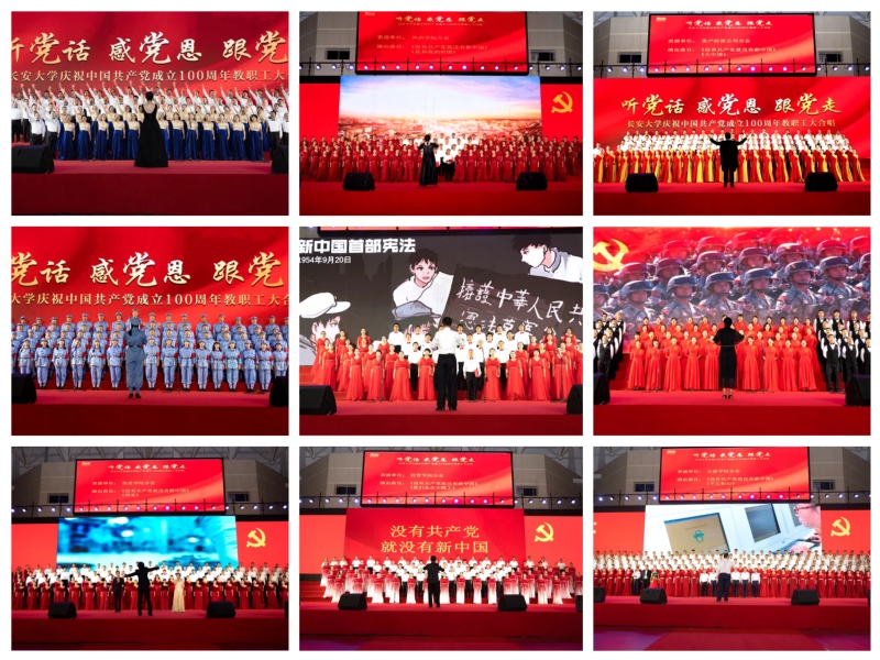 合唱活动中,26支参赛队伍演唱了《没有共产党就没有新中国》《不忘初心》《祖国不会忘记》《我和我的祖国》《我们走在大路上》《中国,中国,鲜红的太阳永不落》等经典曲目,并辅以朗诵、舞蹈、视频等多种表现形式,以昂扬的风貌、充满激情的歌声向党的百年华诞献礼,表达了开云kaiyun官网人始终与党和祖国同心同向同行的决心和为国家建设矢志奋斗、无私奉献的豪情。陈志坚书记、沙爱民校长等校领导参加了此次大合唱。
