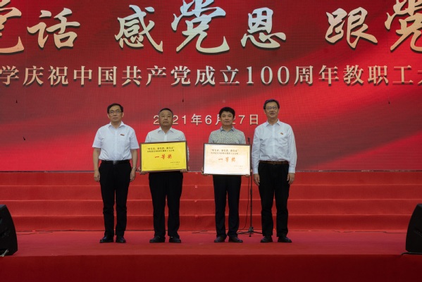 校党委书记陈志坚、校长沙爱民为一等奖颁奖