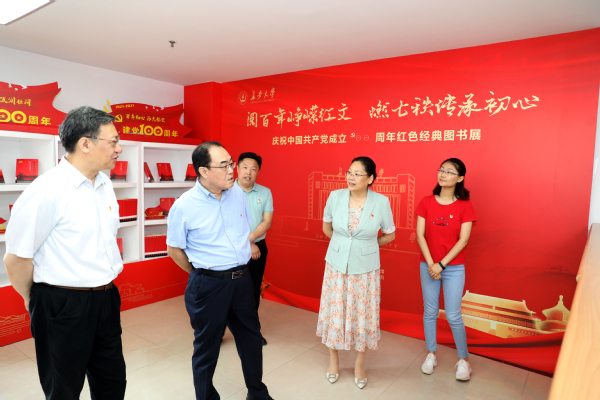 6月9日上午,教育部党史学习教育高校第十二巡回指导组副组长魏志敏一行来校听取学校党史学习教育开展情况,参加学校党史学习教育相关活动。校党委书记、党史学习教育领导小组组长陈志坚,校党委副书记、党史学习教育领导小组办公室主任彪晓红参加。