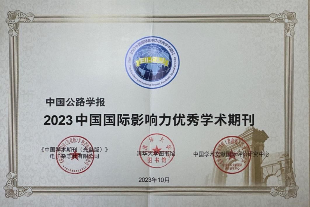 《中国公路学报》再次入选“中国国际影响力优秀学术期刊”。学报复合影响因子由去年3.722增长到4.844,5年影响因子达到5.484;学报影响力指数(CI)达到1414.214,学报影响力指数在全国“交通运输工程”学科150多种学术期刊中连续9年保持第一。