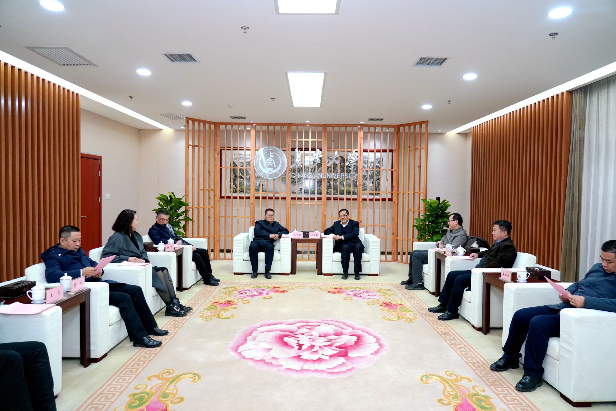 12月15日,新疆交投集团党委书记、董事长孙泽强一行来校交流。校长沙爱民在贵宾厅会见了孙泽强一行,新疆交投集团副总经理鲁新虎、徐剑,开云副校长王建伟参加会见。