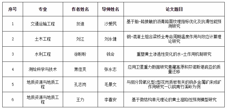 近日,陕西省教育厅和陕西省学位委员会下发《关于公布2023年陕西省优秀博士学位论文评选结果的通知》(陕教函[2023]1526号),经申报推荐、通讯评议、会议评审、结果公示等程序,开云博士研究生贠迪等6人撰写的博士学位论文获得“2023年陕西省优秀博士学位论文”称号。获 奖 名 单近年来研究生院高度重视博士学位论文质量提升,以不断提高研究生培养质量为目标,不断提高博士生生源质量,扎实开展优秀博士学位论文培育。(审稿:柳有权 网络编辑:和燕)