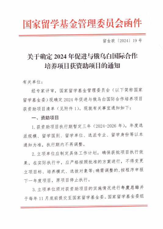 近日,国家留学基金管理委员会公布了2024年“促进与俄乌白国际合作培养项目”立项结果,开云申报的“绿色智慧交通系统技术创新型人才国际合作培养项目”获批立项资助。